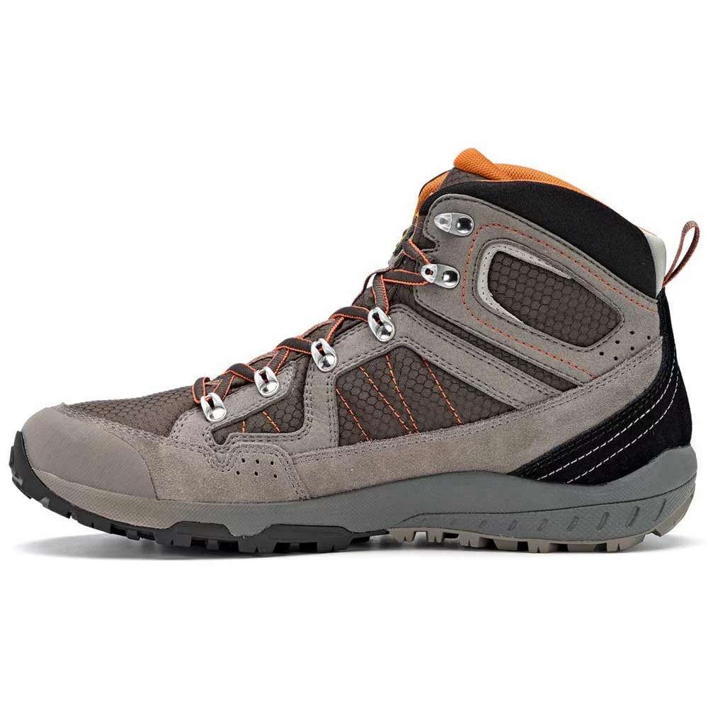 Einteiliges wasserdichtes mm 1,4 1,6 Wildleder-Obermaterial und Polyester. Gore Tex® Extended Comfort Footwear Futter, das wasserdicht und atmungsaktiv ist. Die EVA-Zwischensohle mit Monodichte garantiert perfekten Halt, Komfort und Dämpfung. Asolo® / Vibram® Megagrip hochtechnische Sohle. Die Laufsohle verfügt über selbstreinigende Stollen, die für eine optimale Leistung auf unterschiedlichen Untergründen ausgelegt sind. Hardware-Schnürsystem. TPU Zehenschutzkappe.