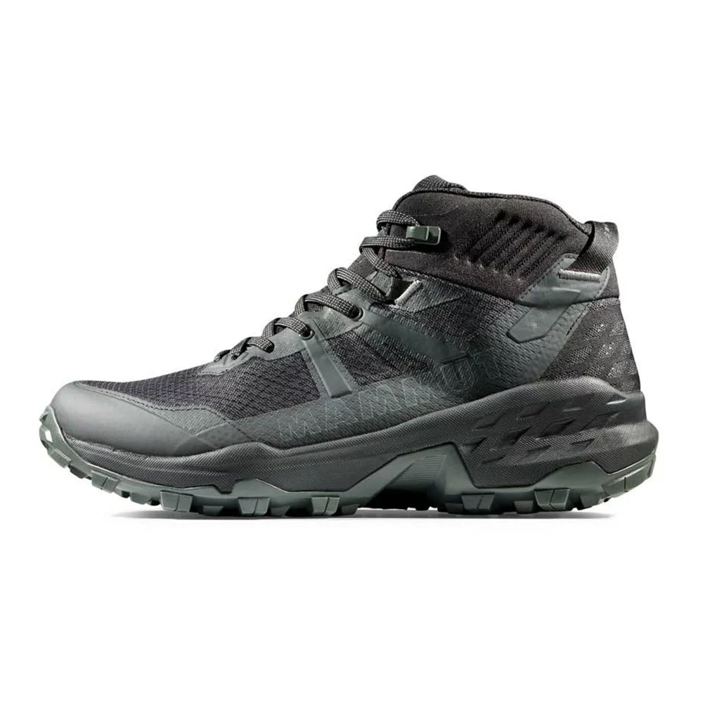 Treten Sie ein in Komfort mit einem leichten und vielseitigen Mid-Cut-Schuh. Die Kombination einer Mammut Swiss Design-Sohle für zuverlässigen Halt mit einer Eva-Zwischensohle und einer hohen Stapelhöhe für Dämpfung und Stoßdämpfung ist ein großartiger Partner für gemischtes Gelände. Die wasserdichte Gore-Tex-Membran hält es mit einem atmungsaktiven Mesh-Außenmaterial luftig und schützt Sie bei nicht idealen Bedingungen. Für großen Komfort bei minimalem Gewicht ist Sertig die klare Wahl.